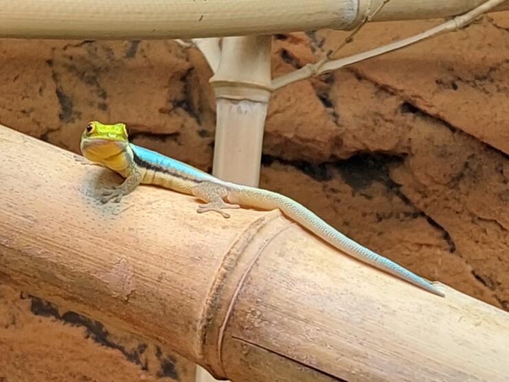 Geckos sind eine Familie der Schuppenkriechtiere. Sie bevölkern seit etwa 50 Millionen Jahren die Erde und haben sich im Laufe ihrer Entwicklung weltweit ausgebreitet. Dank ihrer hervorragenden Anpassungsfähigkeit haben die Geckos die verschiedensten Lebensräume erobert und sind sowohl in den gemäßigten Zonen als auch in den Wüsten der Erde, vor allem aber in den Tropen anzutreffen. Dort haben sie es zu einer großen Artenvielfalt gebracht. (Wikipedia)