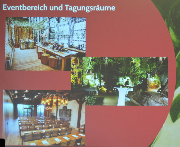 Neben den tierischen Highlights werden die Stadt Münster sowie das gesamte Münsterland mit der Merantihalle aber um noch eine weitere Attraktion reicher. „Wir bauen auch neue Veranstaltungsräume. Egal ob Kongress, Tagung oder Hochzeit. Die Gesellschaft kann die gesamte Zeit durch eine große Glasscheibe das Treiben in der Merantihalle beobachten – ohne die Tiere zu stören und ohne schwitzen zu müssen. Zum Empfang oder in der Tagungspause können die Gäste dann auf einen Balkon und damit in die Tropenhalle eintreten und das Treiben sowie die Dschungelatmosphäre genießen“, wirbt der Aufsichtsratsvorsitzende Dr. Ludger Hellenthal. Gemeinsam mit der Geschäftsführerin ist er sich sicher, dass diese in der Region einmalige Eventlocation nicht nur für den Allwetterzoo eine echte Bereicherung ist.