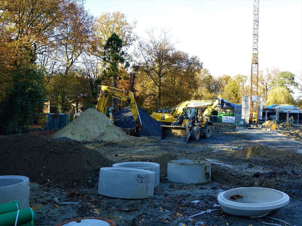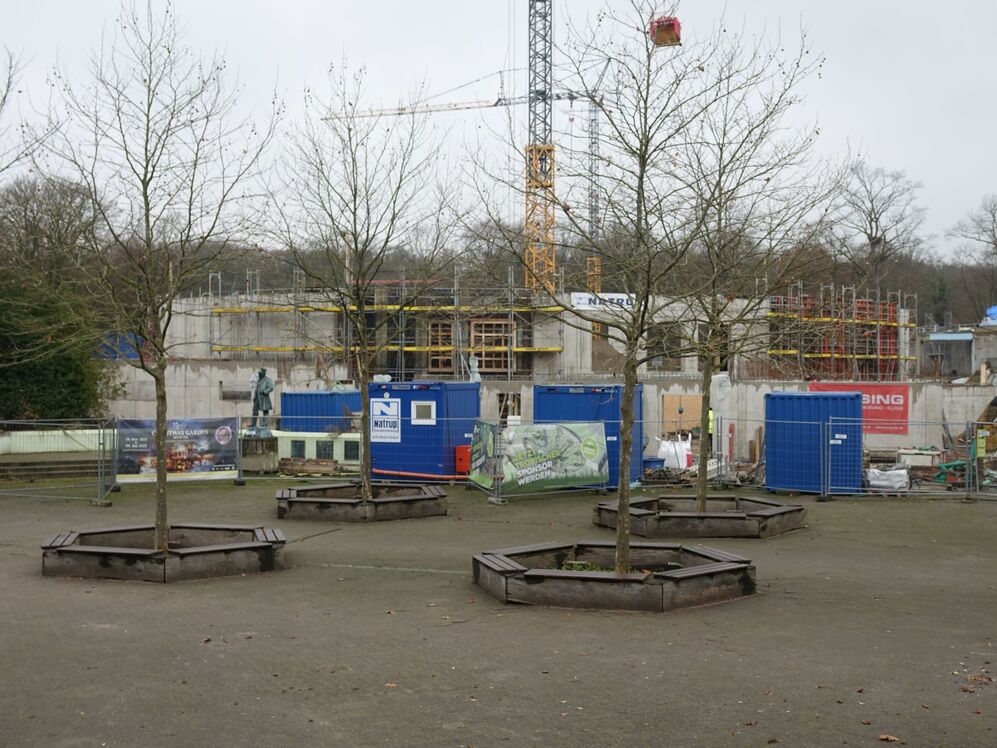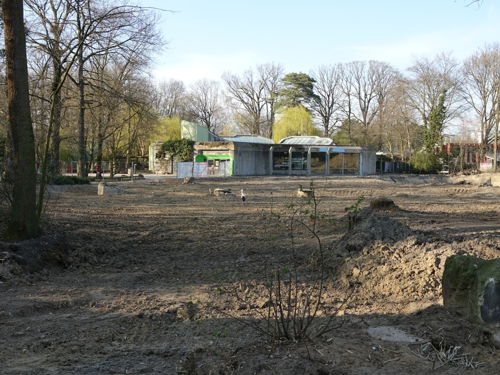 Schaut man von der ehemaligen Känguruanlage Richtung Bärenhaus, ist von der alten Tropenhalle nichts mehr zu sehen. Von Dauer ist diese Freisicht aber nicht. Nachdem die Bohrungen für die Geothermik der neuen Tropenhalle getätigt sind, soll zügig mit dem Bau der Meranti-Halle begonnen werden.