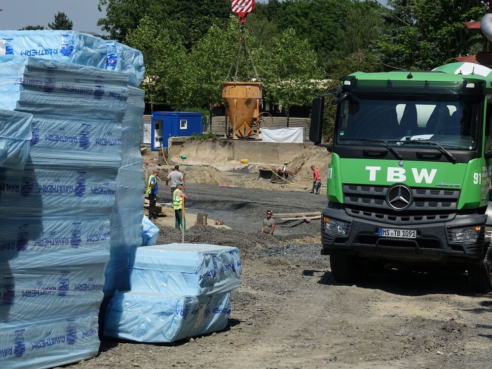 Seit der Baustellenbesichtigung durch die Baustraßenhelfer mit Frau Dr. Schehka kann man weitere Fortschritte sehen. Die Bohrarbeiten sind abgeschlossen und das Einschalen der Wände hat begonnen.