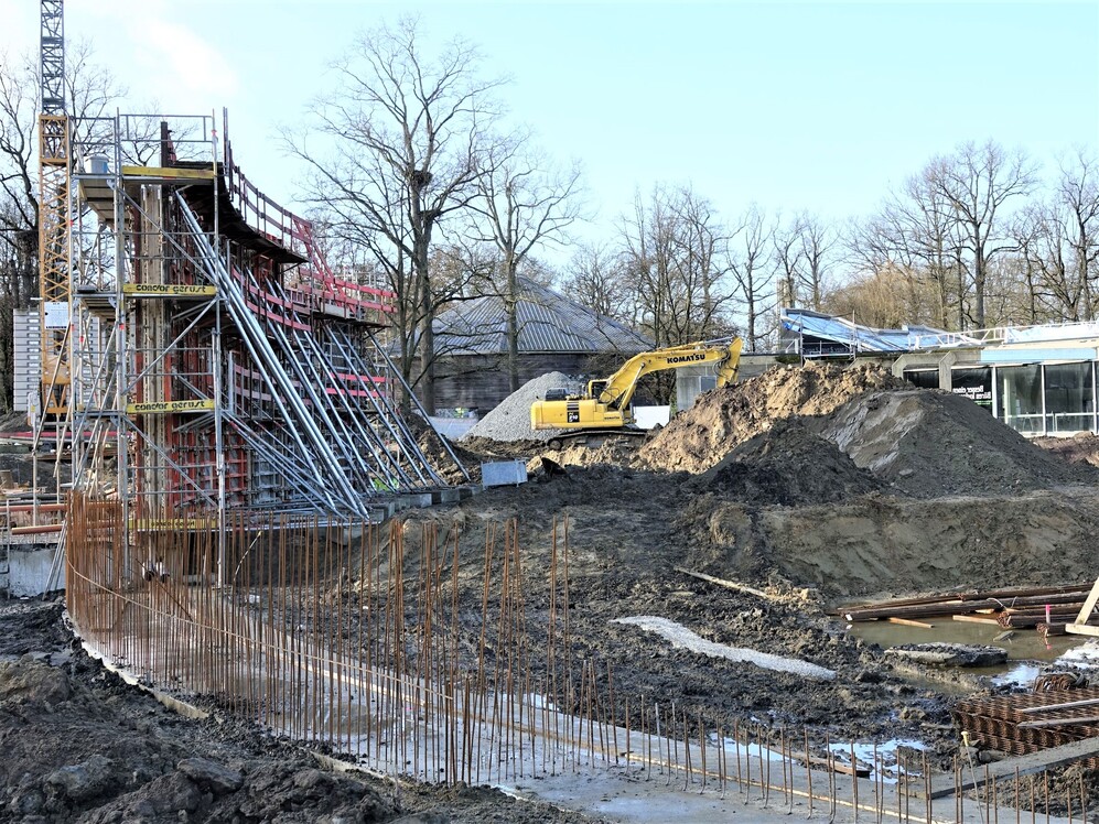 Die fortschreitenden Betonierarbeiten lassen mittlerweile die Größe der neuen Tropenhalle erkennen. Der milde Winter hat bis jetzt dafür gesorgt, dass die Arbeiten termingerecht durchgeführt werden konnten.