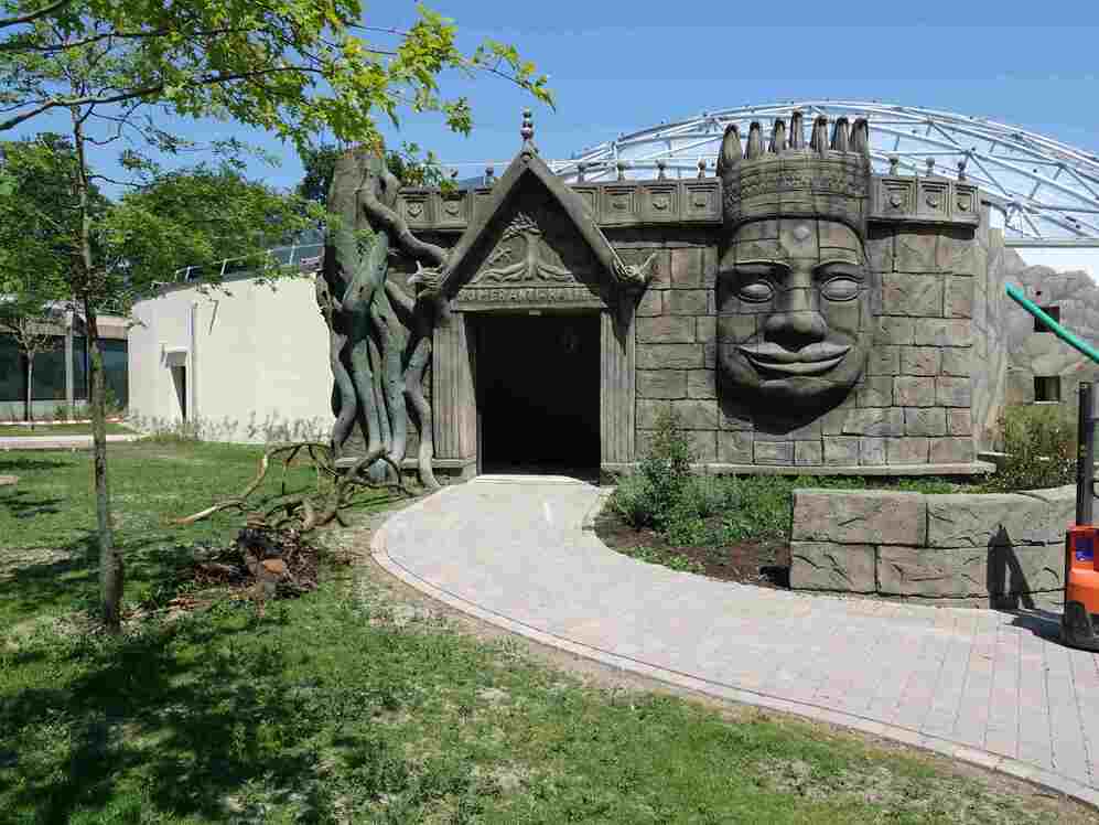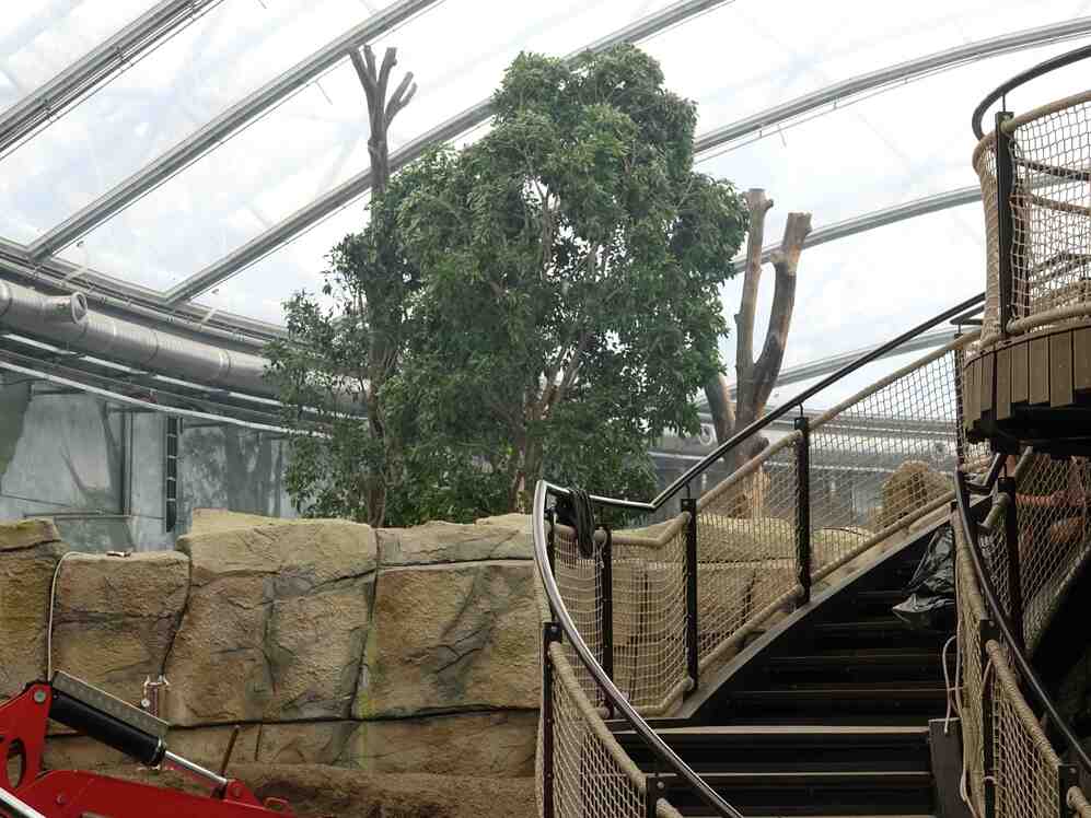 Kunstfelsen, Treppen für den Höhenweg, Gehegegestaltung und Dekoration, überall wird an der Fertigstellung der Meranti-Halle gearbeitet. Werfen Sie einen Blick auf die nachfolgenden Bilder.