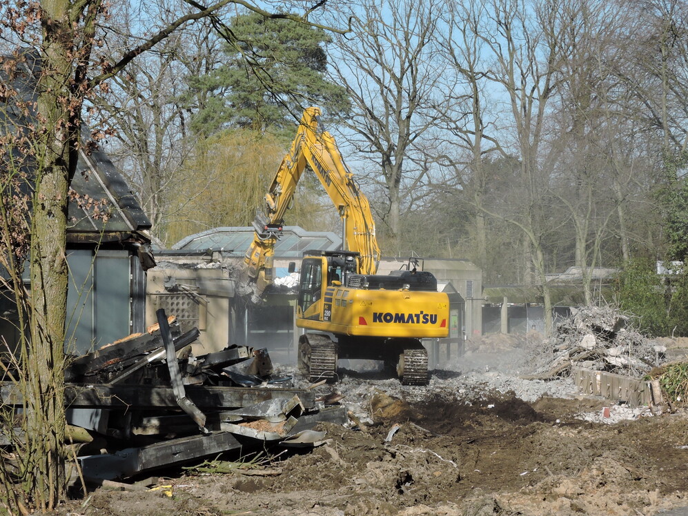 Nach dem Entkernen der alten Tropenhalle findet nun seit der 7. KW der Abriss statt. Anfang der 1970er Jahre auf dem damals höchsten Stand der Technik gebaut, war das Tropenhaus in den letzten Jahren ein Kostenfresser, der 13 % der gesamten Energie des Zoos verbrauchte, so der Technische Leiter Dirk Heese.