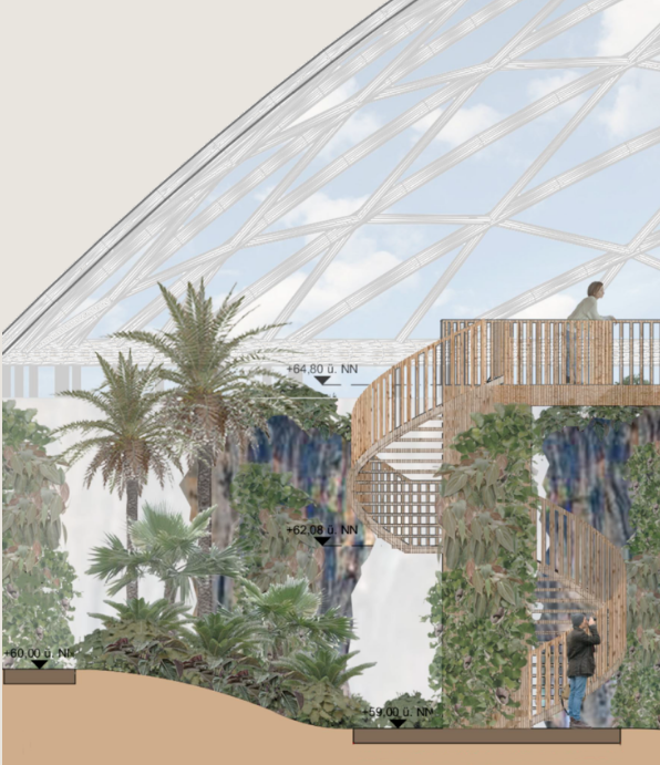 Die neue Tropenhalle hat eine Grundfläche von 4.000 Quadratmetern. Inklusive der Außenanlagen wird insgesamt auf einer Fläche von 11.000 Quadratmetern gebaut. Im höchsten Punkt weist die Folien-Kuppel-Konstruktion der neuen Halle eine Höhe von 16 Metern auf. „Das ist auch gut so, wollen wir doch unsere Besucher in tropische Höhen entführen“, sagt die Geschäftsführerin Dr. Simone Schehka. „Uns ist das Erlebnis der Tropen auf allen Ebenen wichtig. Über Hängebrücken in drei und sieben Metern Höhe können Besucher den Brüllaffen in die Augen schauen und die Faultiere in den Baumkronen beobachten. Und ein spektakulärer Unterwassereinblick ermöglicht den direkten Blick auf die schwimmenden Riesenotter.“