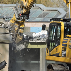 Hier sehen Sie einige Bilder vom Abbruch der alten Tropenhalle sowie von der Baustelle.