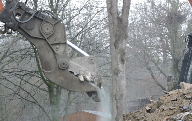Zerkleinerungskopf eines Abrissbaggers im Allwetterzoo