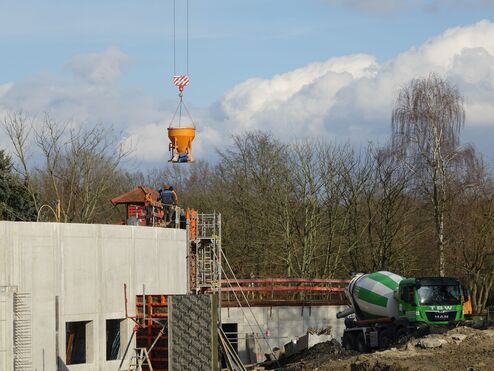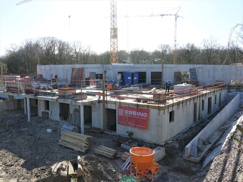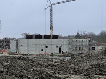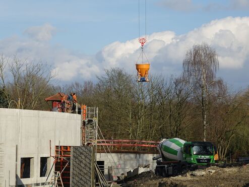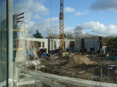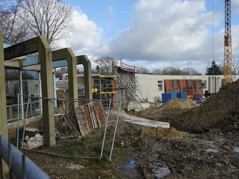Evelyn und Stephan Egelkamp haben die Baustelle der Meranti-Halle überflogen und dieses tolle Bild geschossen.