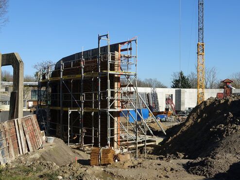 Südseite und Einschalungsarbeiten für die Nebengebäude