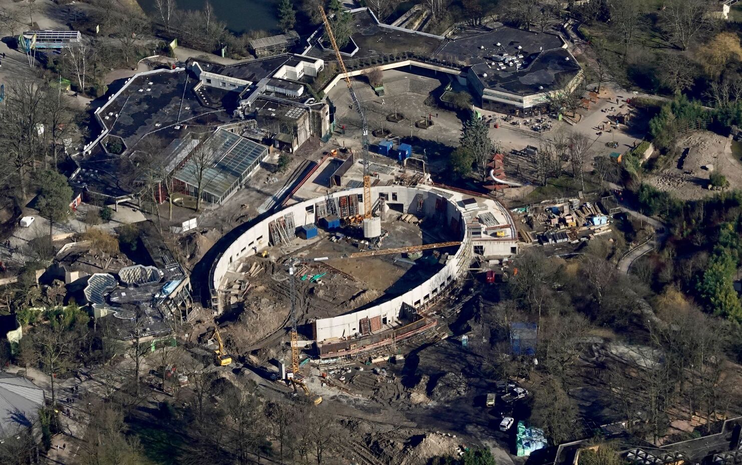 Blick aus Richtung Elefantenpark auf die Baustelle.