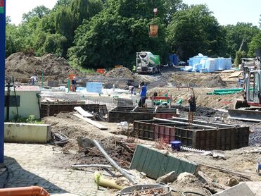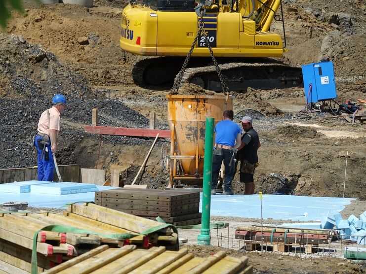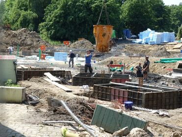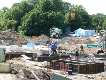 Der Beton schwebt ein.