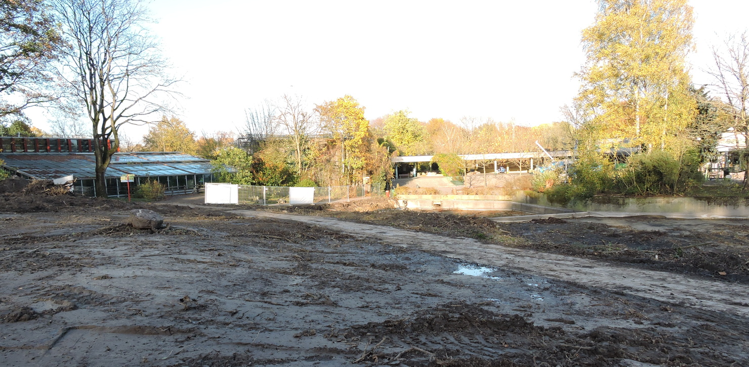Die Baustraße führt hinter den Kulissen über den Wirtschaftshof, vorbei an der neuen Rotluchsanlage und durch das Nadelöhr zwischen Großvogelvoliere und Tigeranlage. „Unsere Besucher werden unter der Woche über einen Zebrastreifen geführt. Um die Sicherheit der Gäste zu gewährleisten, wird eigens dafür Personal abgestellt. An den Wochenenden, wenn auf der Baustelle nicht gearbeitet wird, können sich alle aber wie gewohnt auf dem Areal des Allwetterzoos bewegen – mit Ausnahme des eingezäunten Baufeldes“, so Dirk Heese. Auch der Zoo-Verein bringt sich an dieser Stelle ein, im ehrenamtlichen Einsatz sorgen einige Mitglieder an zwei Wochentagen für einen gefahrlosen Zoorundgang.