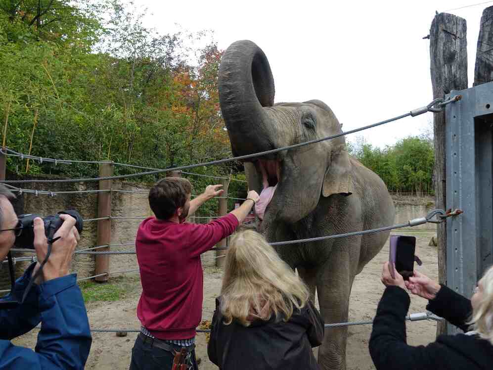 Am 08. Oktober stand für den Seniorenclub ein Besuch im Elefantenhaus an. Kuratorin Janine Wendels begleitete die circa 15 Seniorinnen und Senioren in den Bullenstall und in die Kuhställe. Im Tierpflegergespräch erfuhren die Teilnehmer interessantes über die Haltung der Elefanten im Allwetterzoo. Eine Elefantenfütterung bildete den Abschluss der Veranstaltung.