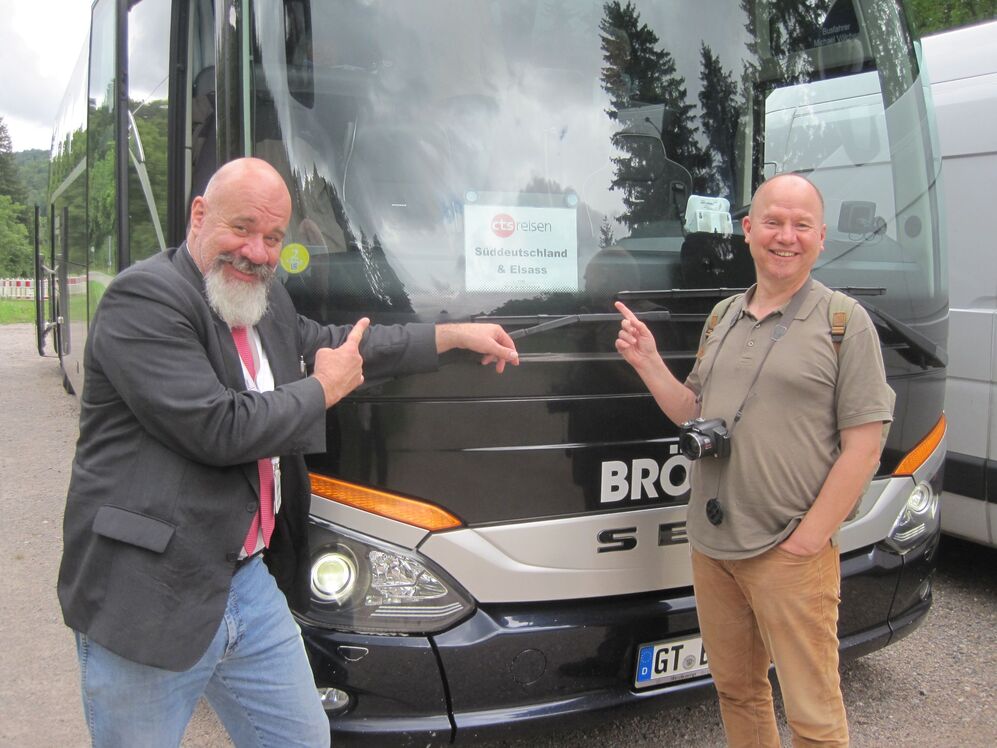 Hier gibt es Bilder von der Sommerreise des Zoo-Vereins nach Süddeutschland und in den Elsass. Die Reise ging über Stuttgar und Freiburg, mit einem Abstecher nach Basel, über Mulouse nach Colmar Weiteres Ziel war Straßburg. Dann ging es über Karlsruhe zurück nach Münster. Im Bild 2 mal Michael: links, Michael der Busfahrer, rechts, Michael der Reiseleiter.