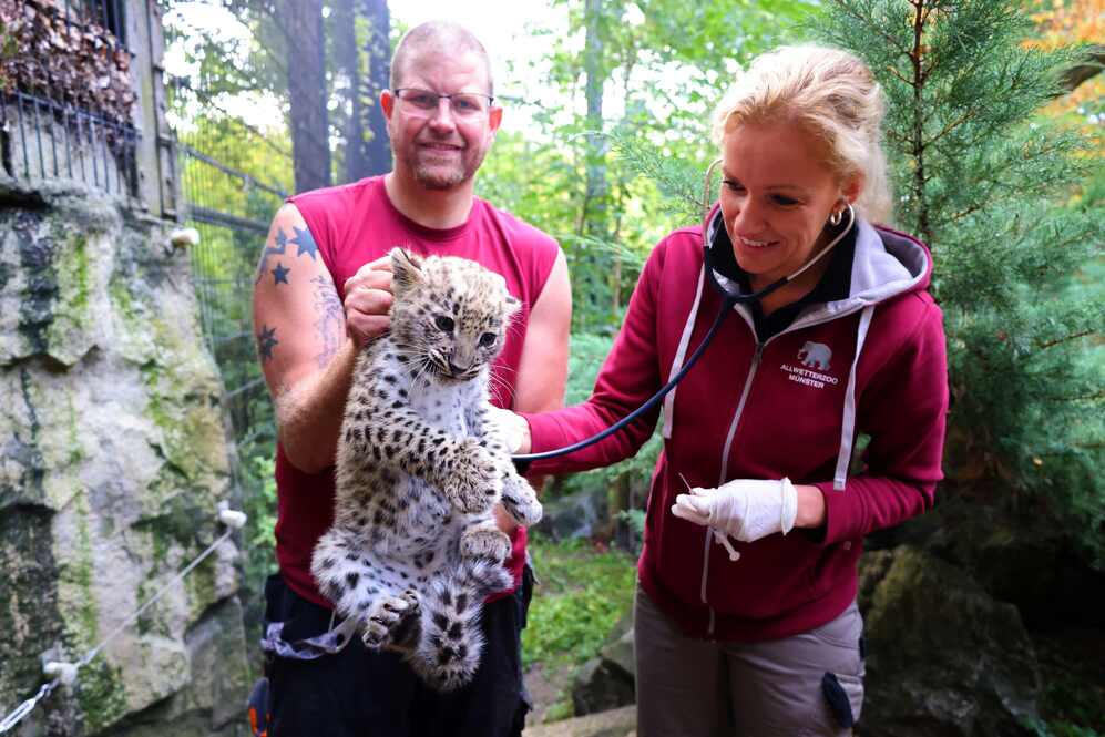 Vor neun Wochen ist im Allwetterzoo Münster ein Persisches Leoparden-Jungtier zur Welt gekommen – ein sehr besonderer und wichtiger Erfolg für den Zoo und die stark bedrohte Tierart. Seit der Geburt am 3. Juli 2025 wurden Mutter „Nahla“ und ihr Jungtier so wenig wie möglich gestört, denn gerade die ersten Wochen nach einer Tiergeburt sind kritisch.