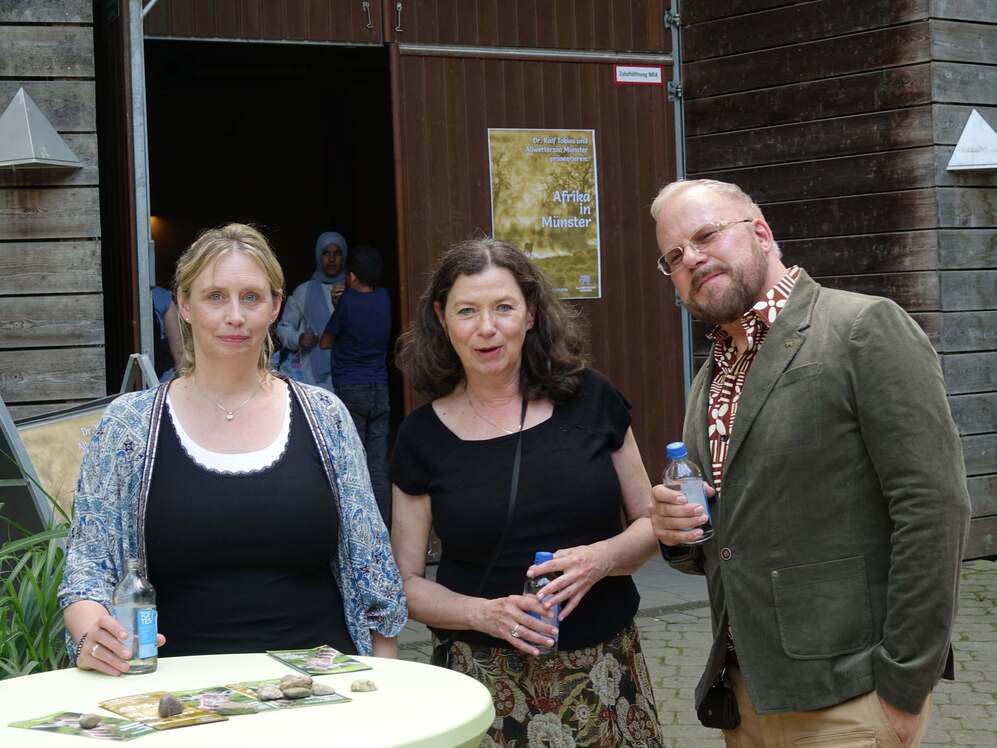 Zoodirektorin Dr. Simone Schehka, Sybill Ebers, Direktorin des Pferdemuseums und Dr. Ralf Tobias eröffneten die Multimediashow "Afrika in Münster" mit Bildern aus 40 Jahren Safari in Afrika im Pferdemuseum. Zu sehen ist die Show in den Sommerferien jeweils Montags, Mittwochs und Freitags um 11.00 und um 12.30 Uhr in der Arena des Pferdemuseums.