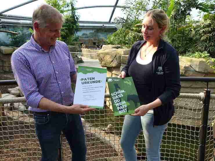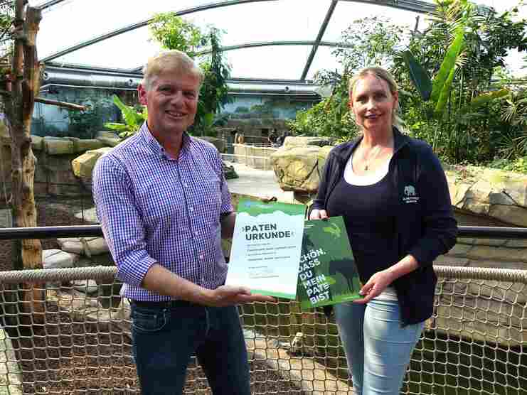Eine kleine Überraschung hatte Dr. Simone Schehka noch für Rüdiger Sasse dabei: die Feinbrennerei erhielt von der Zoochefin die Patenschaft für das Riesenotterweibchen geschenkt. “In Kürze wird das weibliche Tier die Männer-WG in der Meranti-Halle ergänzen”, freut sich die Zoodirektorin. Ihr Name? Amérie, natürlich.