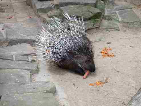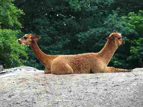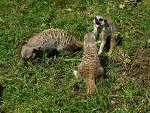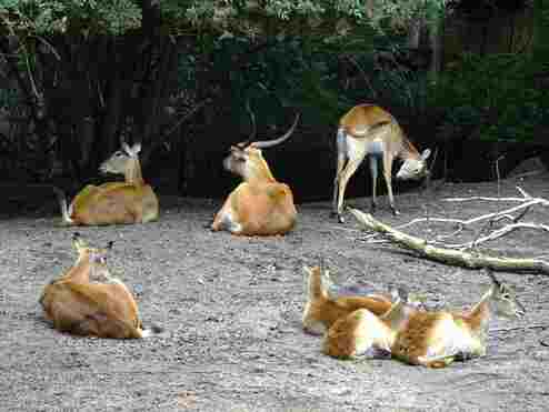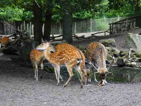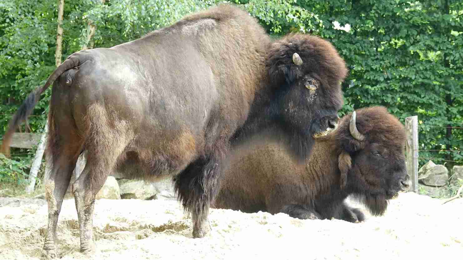 Waldbisons, die auf einer großen Anlage mit Halsbandpekaris vergesellschaftet sind.