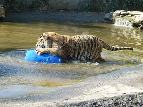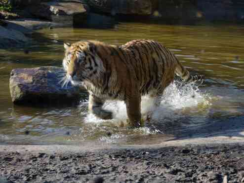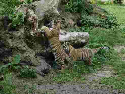 Das Tiger-Paar versteht sich sehr gut, trotzdem sind Ausweichmöglichkeiten wichtig. Tiger sind Einzelgänger und kommen eigentlich nur für die Paarung zusammen. „Fedor akzeptiert Raya auch außerhalb ihrer rolligen Phasen in seinem Territorium, aber natürlich gibt es auch zwischen ihnen mal Reibereien“, sagt Jakatt. „Deswegen ist es gut, dass sie nun wieder mehr Platz haben.“