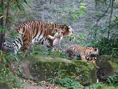 Fast zwei Jahre lang gab es im Allwetterzoo Münster sechs Sibirische Tiger: Fedor, Raya und ihre vier Jungtiere. Der Nachwuchs aus dem Mai 2024 ist mittlerweile mindestens so groß wie die eigene Mutter und längst nicht mehr auf ihre Umsorgung angewiesen.