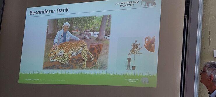 Zu Beginn der Mitgliederversammlung des Zoo-Verein in der vollbesetzten Zooschule gab Zoodirektorin Dr. Simone Schehka einen Überblick über den Tierbestand des Zoos in Bezug auf Geburten, Todesfälle, Zu- und Abgänge. Auch erläuterte sie die gepanten Neuerungen im Zoo. Da der Erste Vorsitzende des Zoo-Vereins nach 18 Jahren nicht mehr zur Wiederwahl antrat, würdigte Frau Dr. Schehka seine Verdienste für seine erfolgreiche und jahrelange Arbeit für den Zoo. Als Geschenk überreichte sie Herrn Peters einen hohen Amberbaum, der demnächst an einem Ehrenplatz im Zoo an sein Engagement für den Zoo erinnern soll.