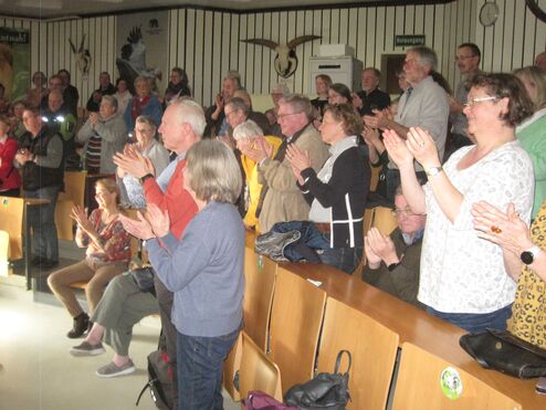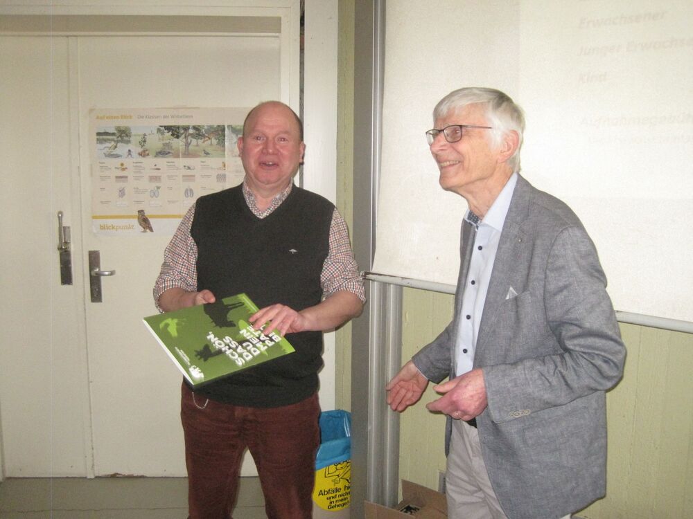 Zu Beginn der Mitgliederversammlung des Zoo-Verein in der vollbesetzten Zooschule gab Zoodirektorin Dr. Simone Schehka einen Überblick über den Tierbestand des Zoos in Bezug auf Geburten, Todesfälle, Zu- und Abgänge. Auch erläuterte sie die gepanten Neuerungen im Zoo. Da der Erste Vorsitzende des Zoo-Vereins nach 18 Jahren nicht mehr zur Wiederwahl antrat, würdigte Frau Dr. Schehka seine Verdienste für seine erfolgreiche und jahrelange Arbeit für den Zoo. Als Geschenk überreichte sie Herrn Peters einen hohen Amberbaum, der demnächst an einem Ehrenplatz im Zoo an sein Engagement für den Zoo erinnern soll.
