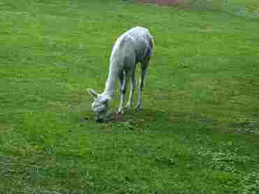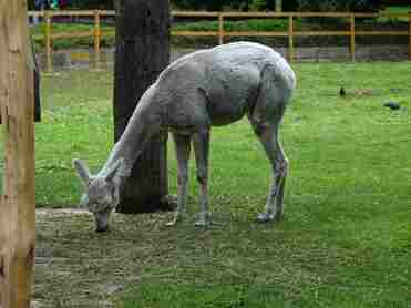 Das Alpaka ist ein Herdentier und gehört zur Familie der Kamele. In Südamerika wird es wegen seiner hochwertigen Wolle gezüchtet. Diese wächst kontinuierlich weiter, weshalb die Tiere regelmäßig geschoren werden müssen. Alpakas sind Pflanzenfresser und sehr genügsam. Wichtig bei ihrer Ernährung sind harte Gräser, damit sich ihre Schneidezähne gut abnutzen können. Die wachsen – genau wie die Wolle – ständig nach.