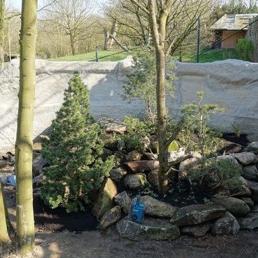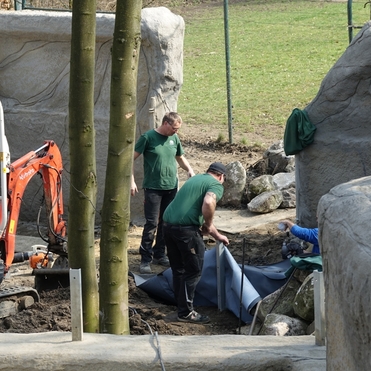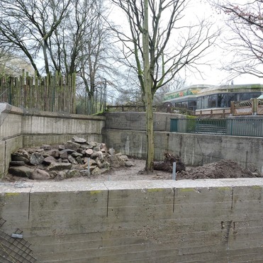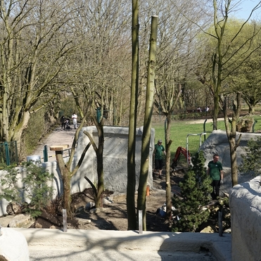 Gegenüber der Großbaustelle der Meranti-Halle haben in den letzten Wochen zwischen Zoorestaurant und Gepardenanlage die Zoohandwerker eine schon seit Jahren unbenutzte Anlage umgebaut. Hier können dann in Kürze die neuen Zoobewohner von drei Ebenen aus beobachtet werden.