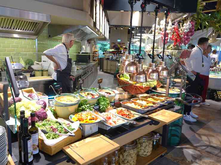 Die Gäste des Allwetterzoos Münster dürfen sich auf eine Vielzahl kulinarischer Highlights freuen, die die Stärken von Marché widerspiegeln: Frische, Qualität, Marktküche, Regionalität und Saisonalität. Täglich hausgemachte Pasta und Patisserie, saisonale Lieblingsgerichte, die „Vegetarian Island“ sowie frisch gebackene Bubble Waffeln mit Softeis und Toppings sind nur einige der angebotenen Köstlichkeiten. Die Zutaten stammen von regionalen Lieferanten, darunter Fleisch- und Wurstwaren vom Hof May, Obst vom Gut Kinderhaus und Käse von der Hafenkäserei.