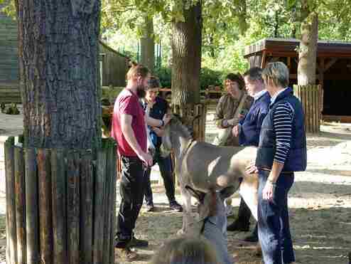 Circa 200 Tierpaten waren gekommen, um ihre Patentiere zu besuchen, mehr über sie zu erfahren und dabei einen Blick hinter die Kulissen zu werfen. In den Konferenzräumen der neuen Meranti-Halle wurden sie zu Anfang von Zoodirektorin Dr. Simone Schehka begrüßt. Sie bedankte sich herzlich und konnte die stolze Summe von 50.000 Euro bekanntgeben, die durch die Tierpatenschaften gespendet worden waren. Anschließend ging es mit den Tierpflegern in die einzelnen Reviere zu den Patentieren.